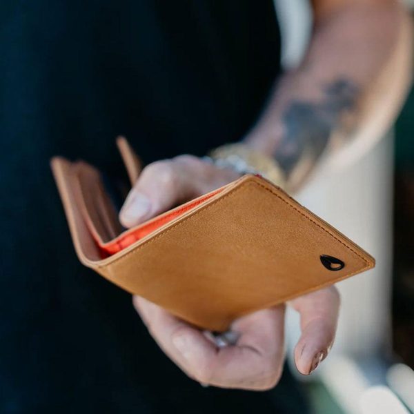 Cartera de cuero vegano. Incluye compartimento para billetes, funda de malla con el logotipo en la parte delantera.
