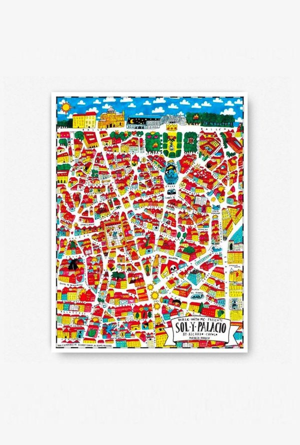 Mapa del madrileño barrio de Sol y Palacio ilustrado por Ricardo Cavolo.43 x 57cm